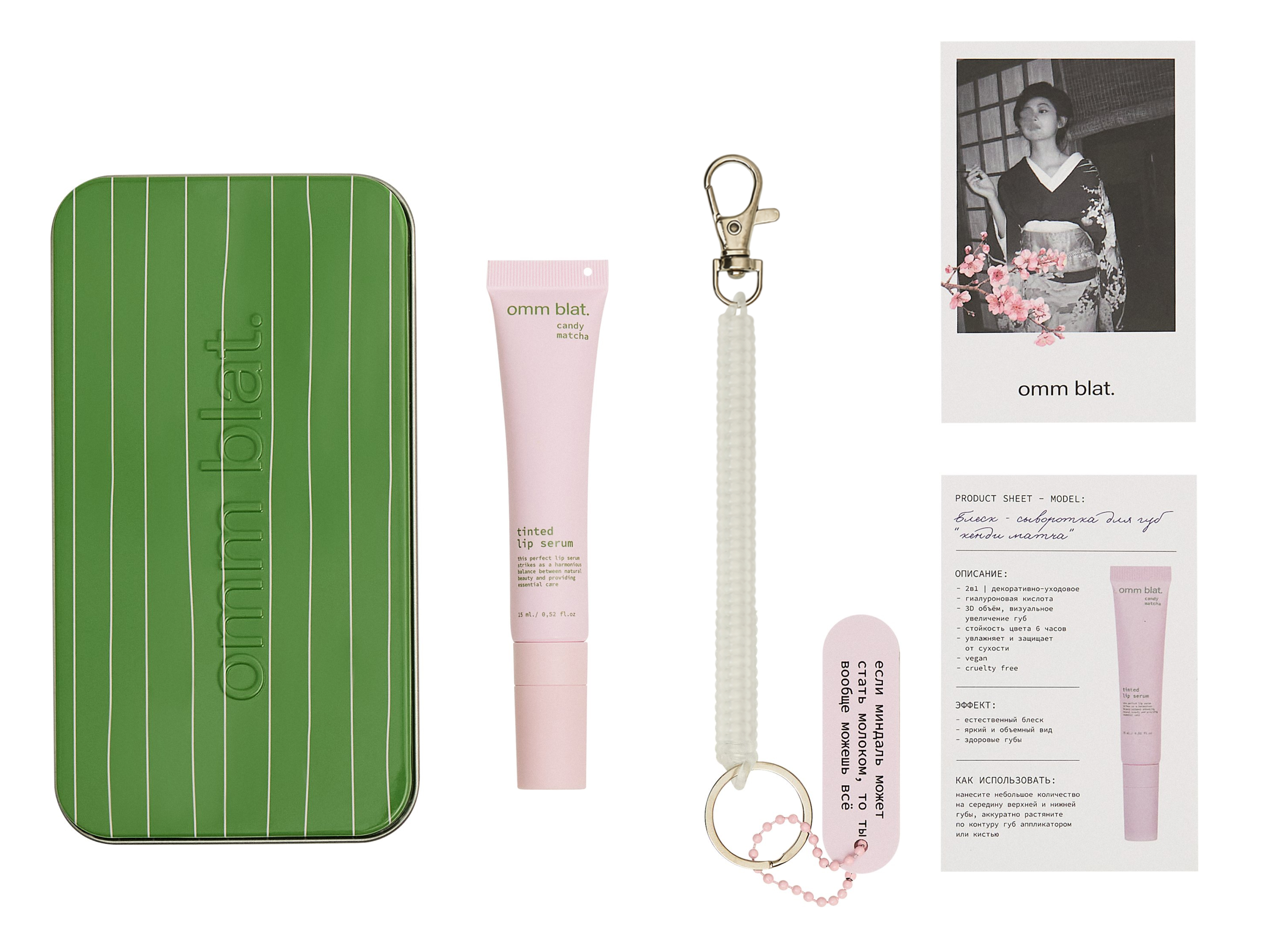Оттенок розовый, как конфетная матча: тёплый, полупрозрачный и с влажным финишем. Подчёркивает естественный цвет губ, дарит свежесть и визуальный объём. Легко вписывается в любой образ - от делового до повседневного. Candy Matcha (Матча с конфетами) всегда с тобой: в сумке, на пути, в твоем темпе. Достать, нанести, продолжить день - без зеркала и сомнений. Алюминиевый кейс с брелком делает его удобным аксессуаром, который хочется держать рядом. Гиалуроновая кислота, матча, центелла, масло ши и витамин Е увлажняют, смягчают и поддерживают комфорт губ в течение дня. Цвет и блеск держатся до 6 часов.
