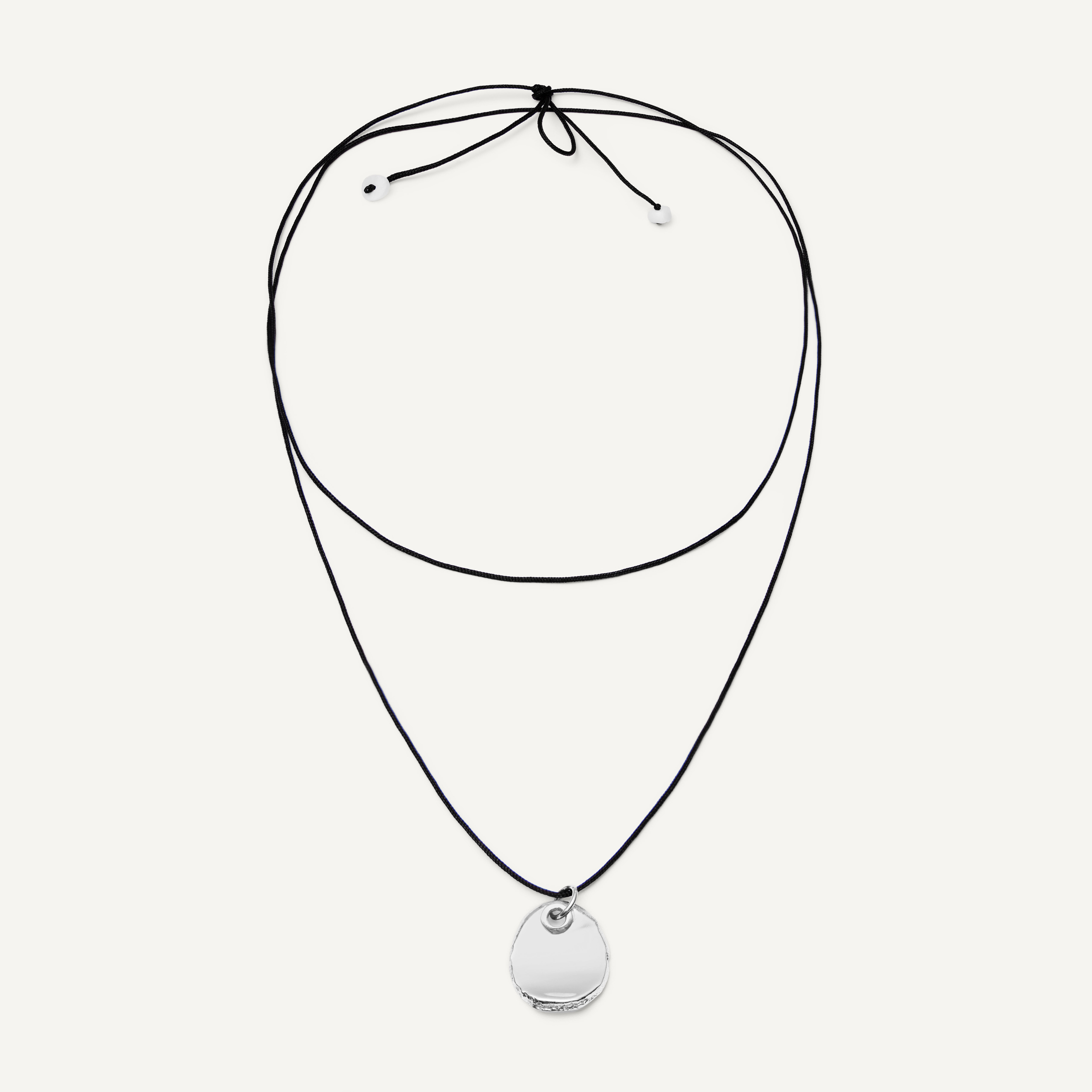 Грубая текстура шнурка, строгий контур и холодное прикосновение металла. Это украшение от бренда Holly June уверенный акцент для вашего характера.