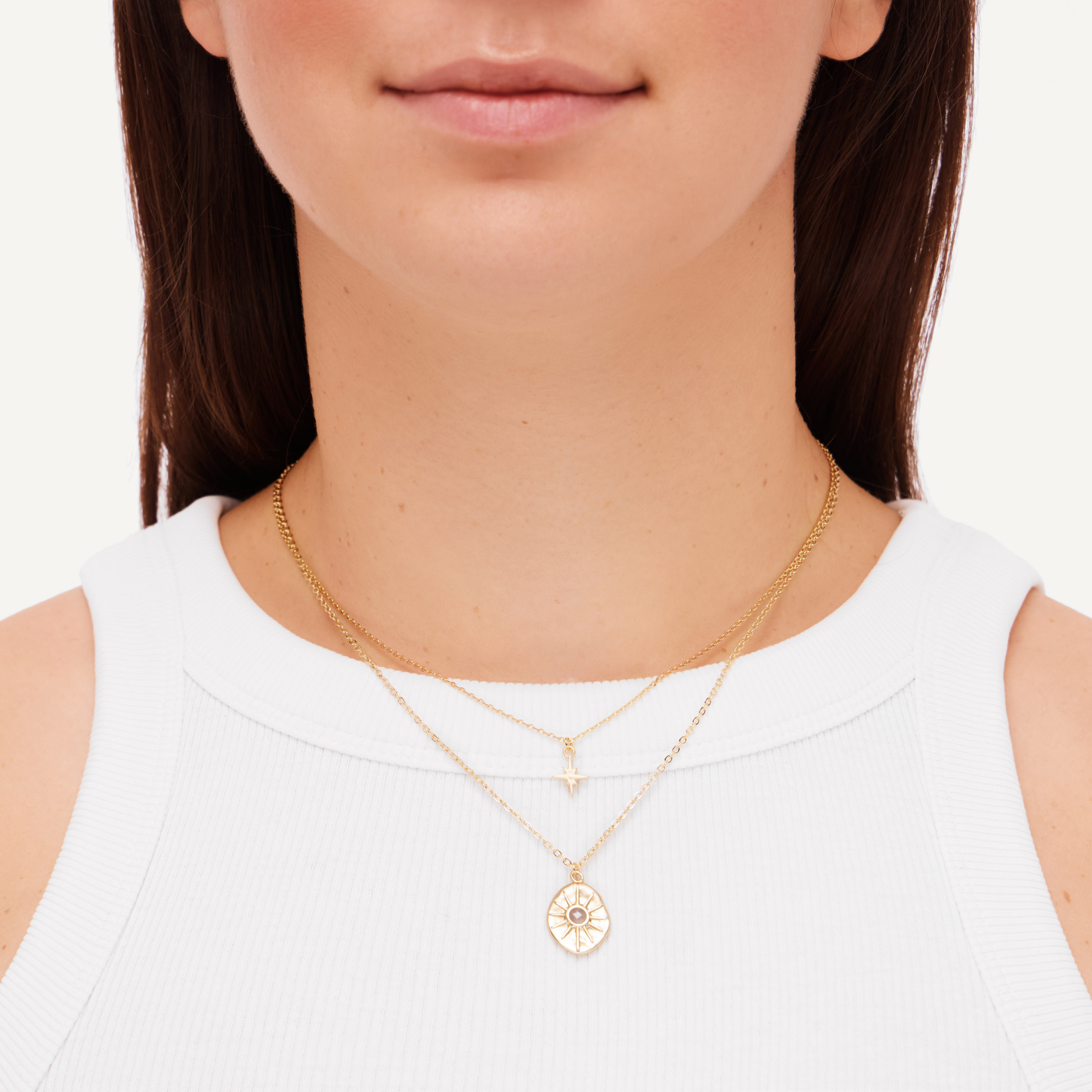Нежное колье-цепочка от бренда Eden Wave c подвеской-амулетом с серым агатом и аккуратной звездочкой - идеальное украшение на каждый день.