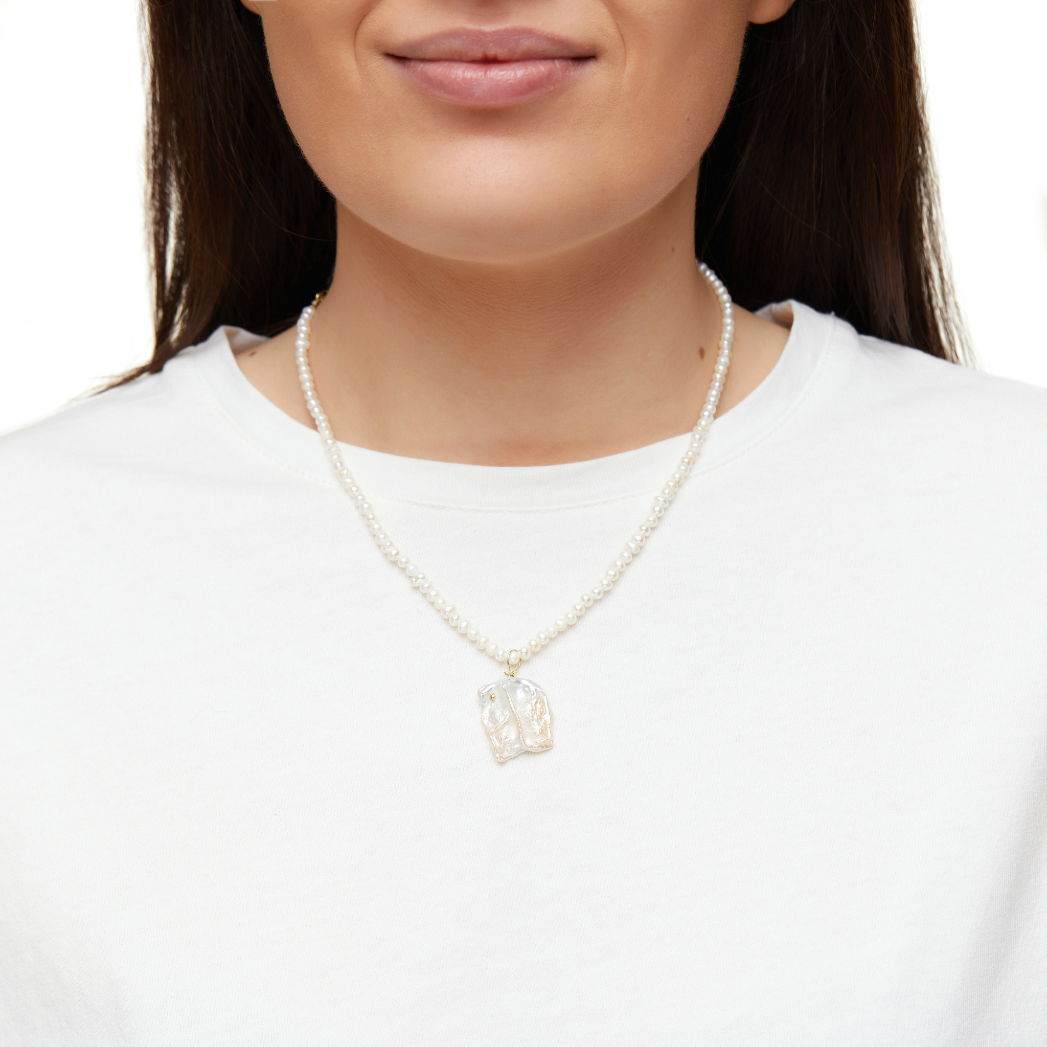 Пресноводная жемчужина, свисающая с нити тонкого жемчуга - это колье, которое пригодится для любого повседневного или более официального образа!
