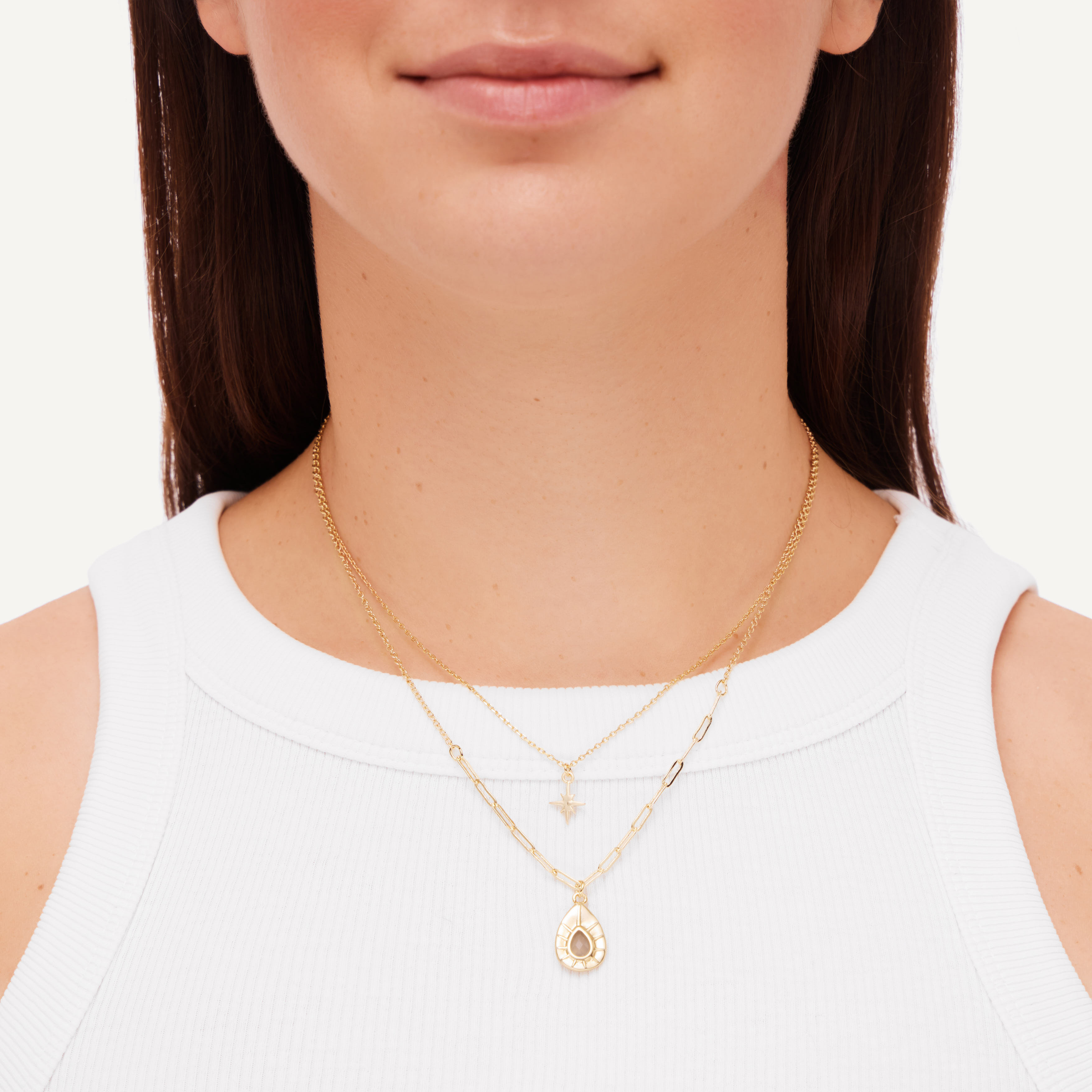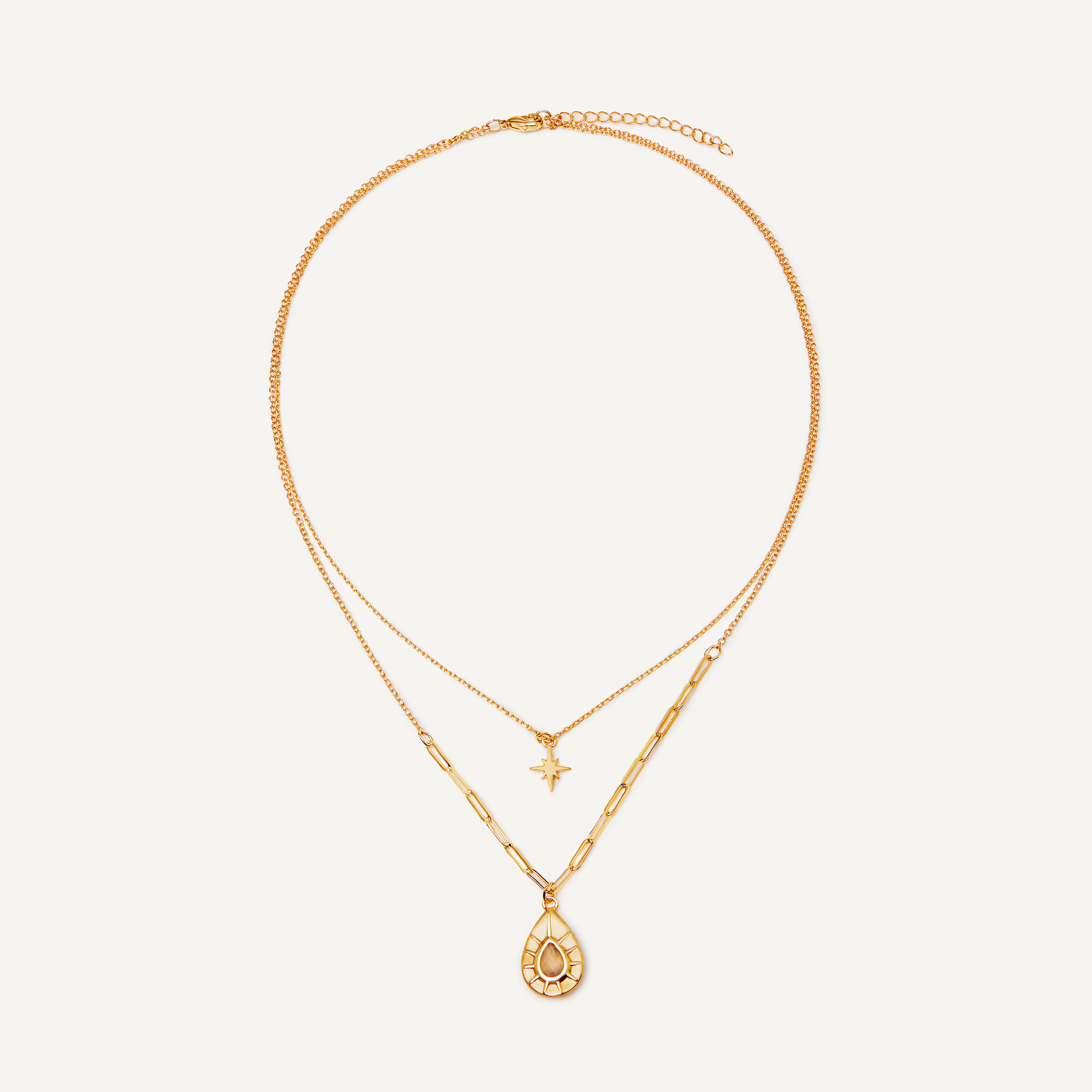 Нежное колье-цепочка от бренда Eden Wave c подвеской-амулетом с серым агатом и аккуратной звездочкой - идеальное украшение на каждый день.