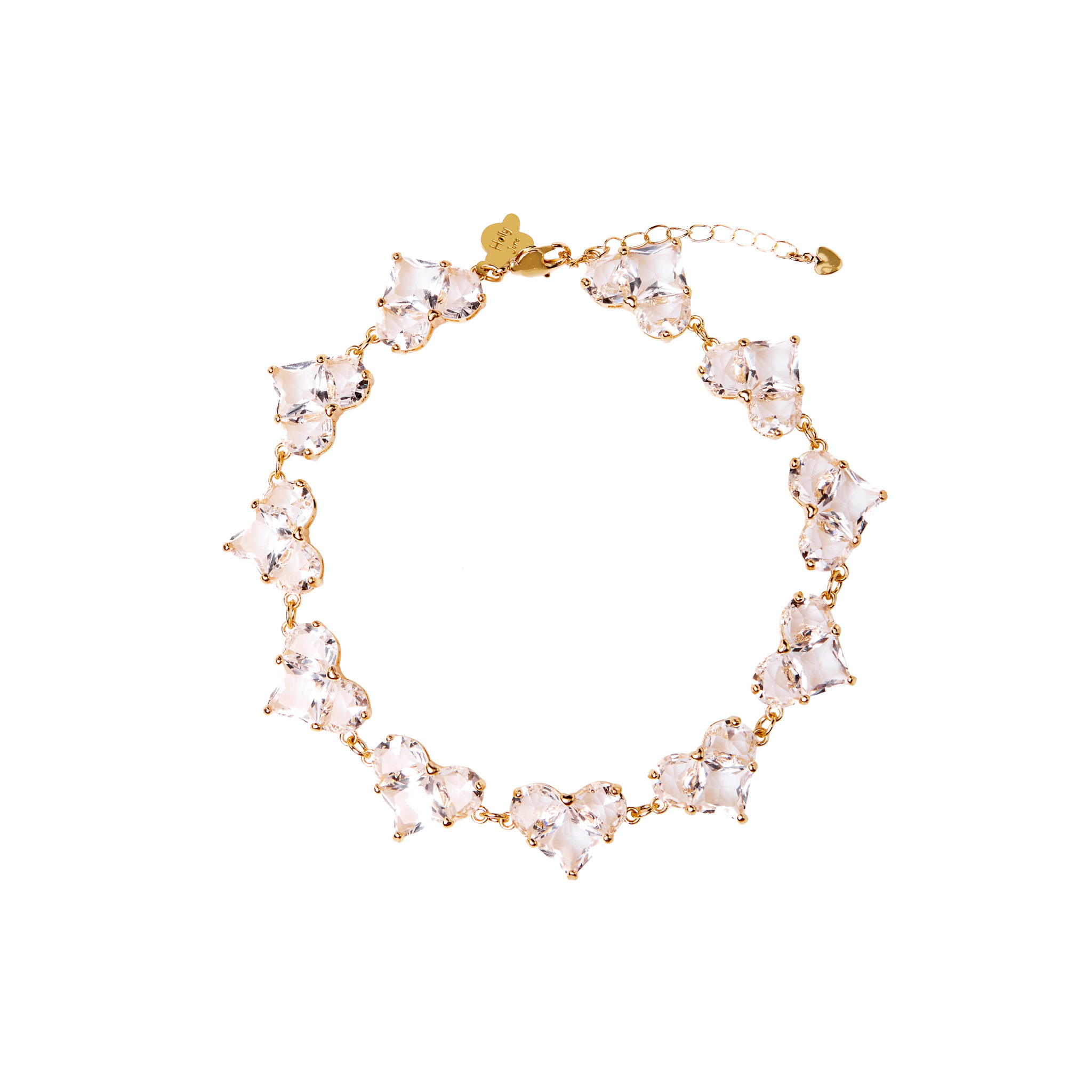 Яркое акцентное колье от бренда Holly June, полностью состоящее из крупных кристальных сердец - must-have этого сезона!