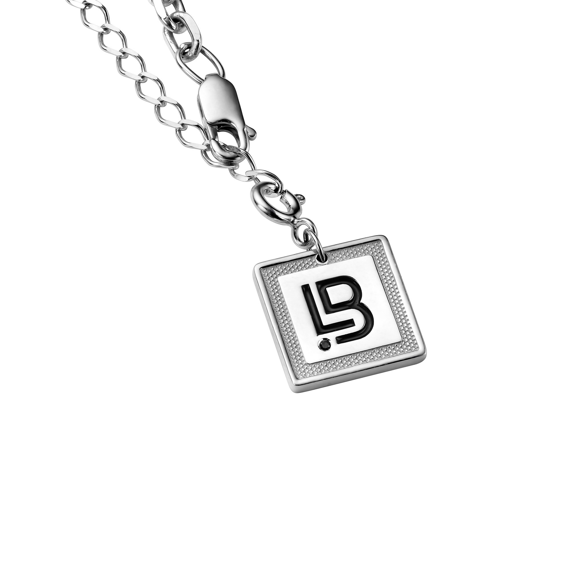 37 см основная цепь + 10 см удлинение (карабин можно зацепить за любое звено). Двусторонний подвес с монограммой LB на карабине