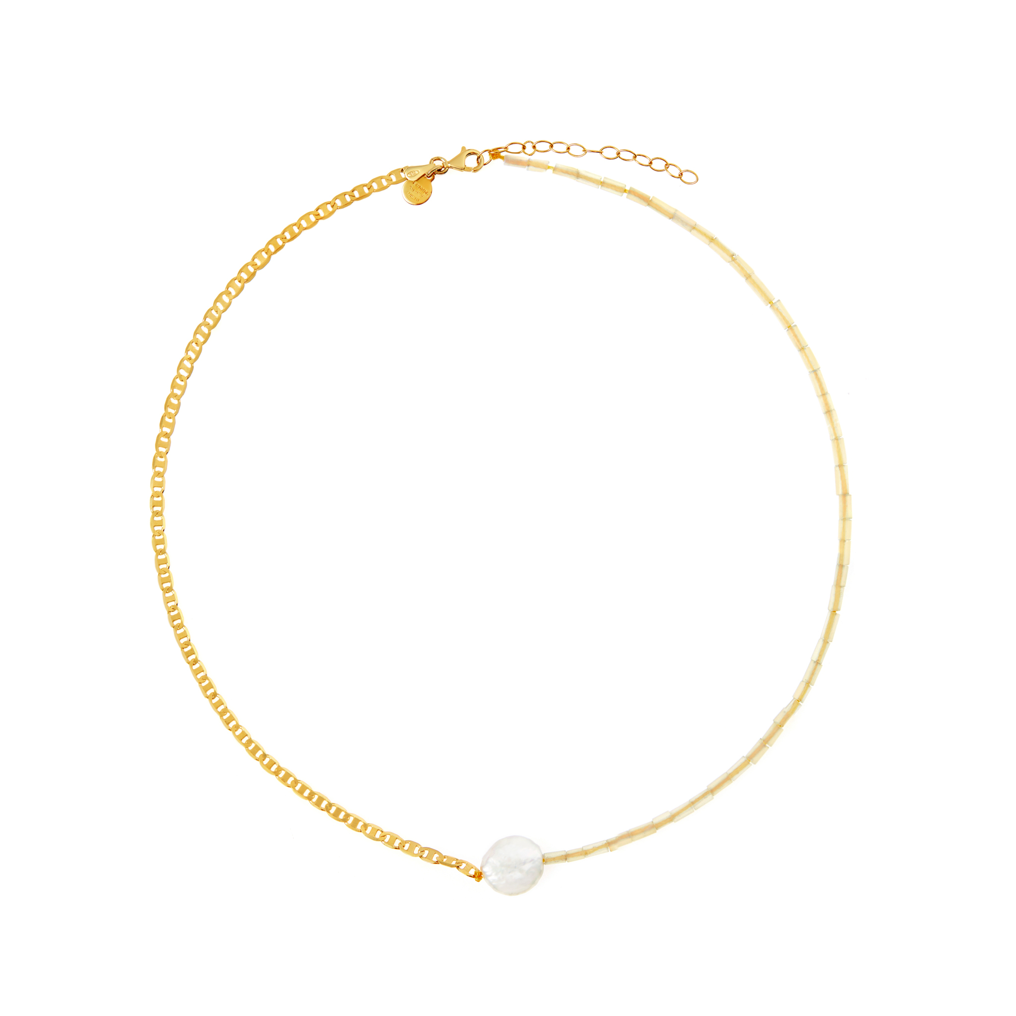 Не можете определиться - вам нужно бисерное колье или классическая цепочка? Это колье станет настоящей палочкой-выручалочкой, ведь оно сочетает оба элемента! В этом колье используется самый женственный из камней, лунный камень, который известен своей способностью развивать внутреннюю силу и интуицию.