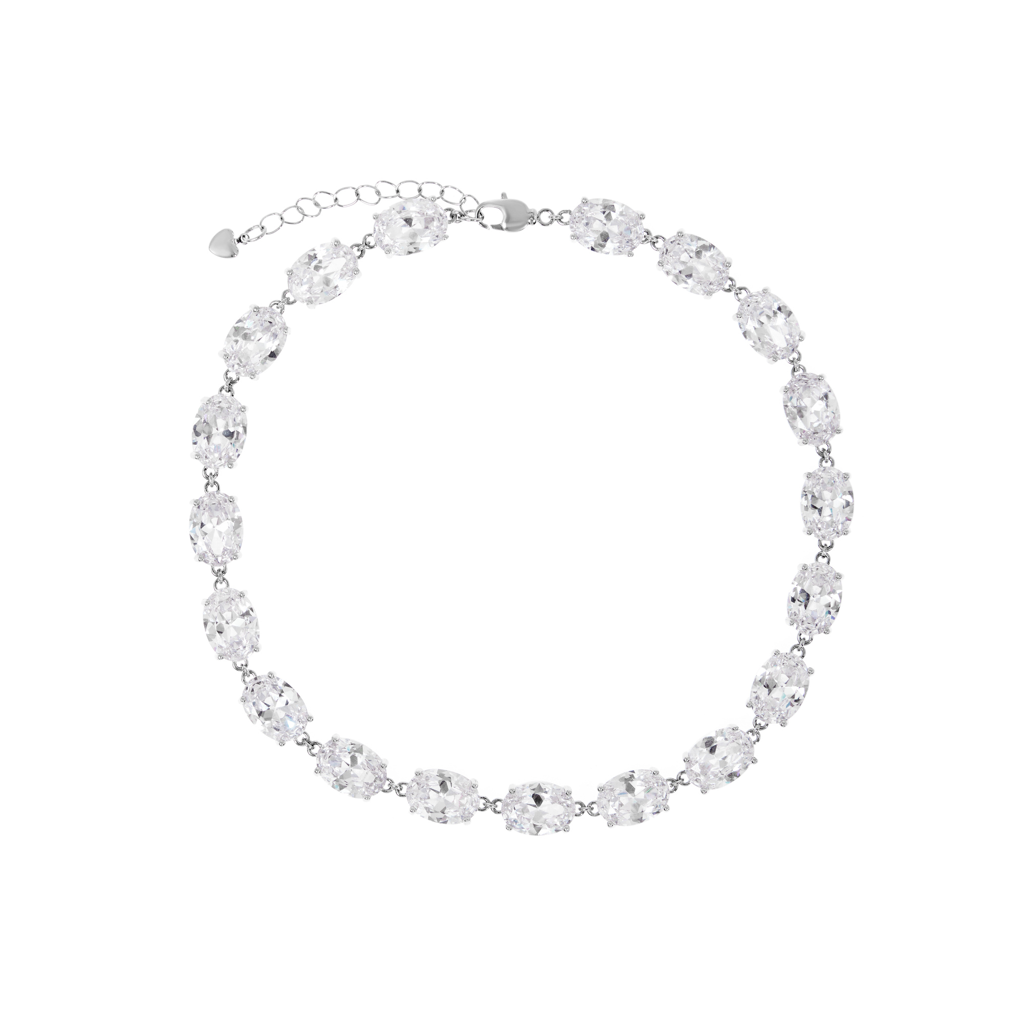 Стильный и дерзкий чокер, выполненный из прочной ювелирной стали, приковывает внимание изящными овальными звеньями, украшенными сверкающими фианитами. Это украшение сочетает в себе современный дизайн и роскошный блеск, делая его идеальным аксессуаром для смелых и уверенных в себе.