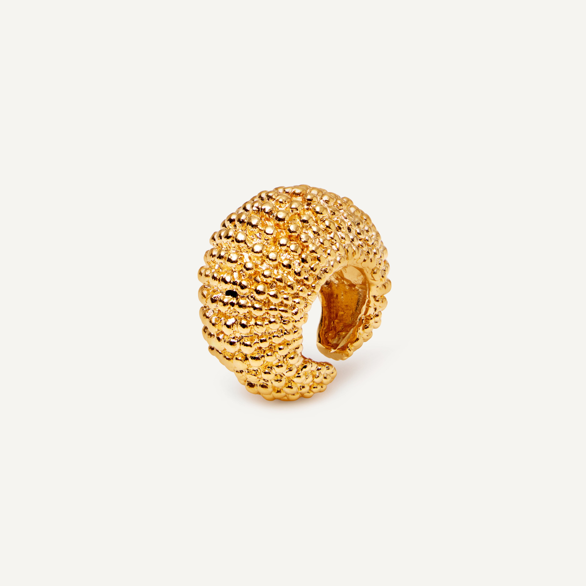 Массивное кольцо из олова с покрытием 18-каратным золотом. Создано вручную в мастерской на берегу Барселоны. Носи его в сочетании с браслетами бренда — в духе зарубежных фэшн-инфлюенсеров или средиземноморских богинь.