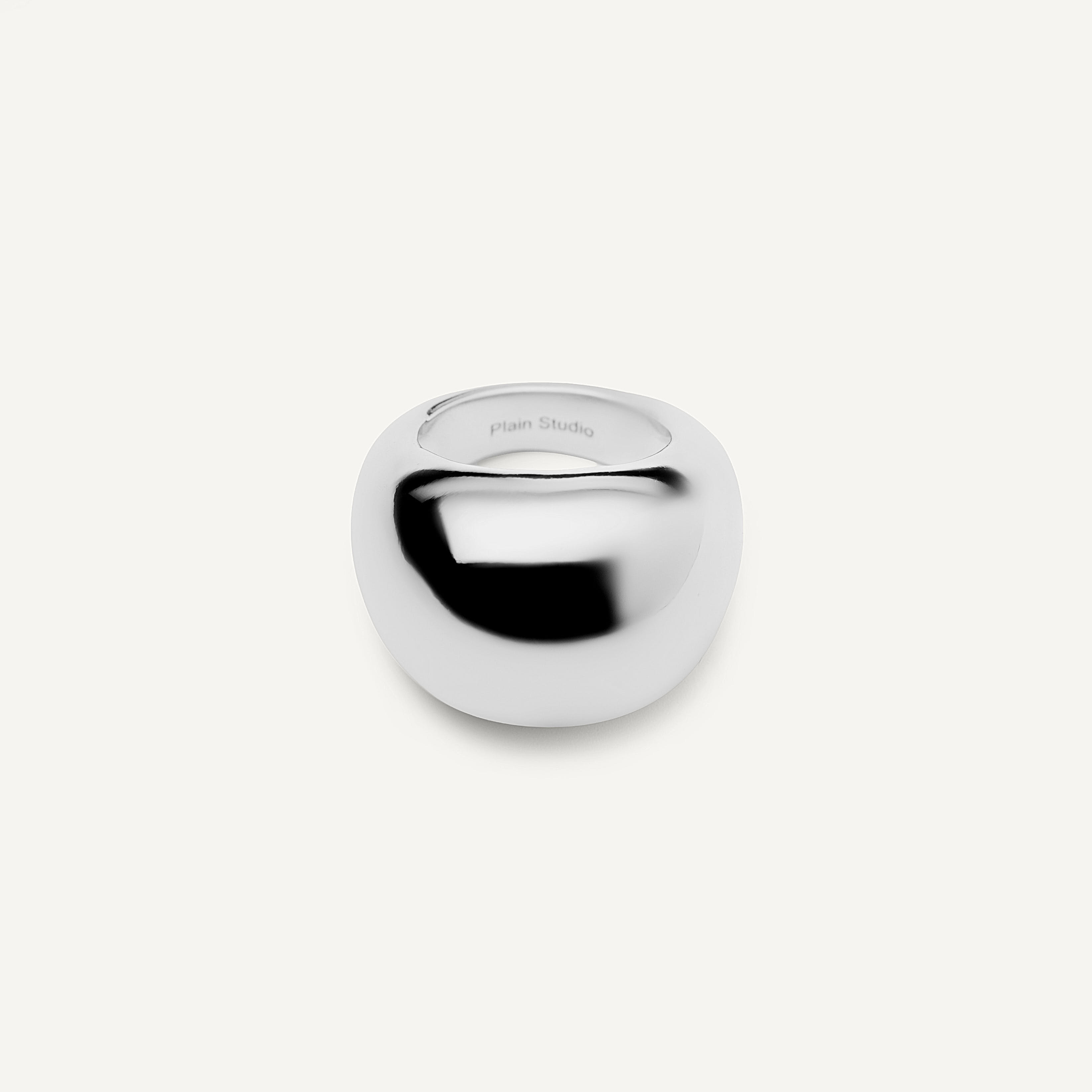 Аккуратное серебряное дутое кольцо от бренда Plain Studio - идеальный вариант правильно расставить акценты в образе.