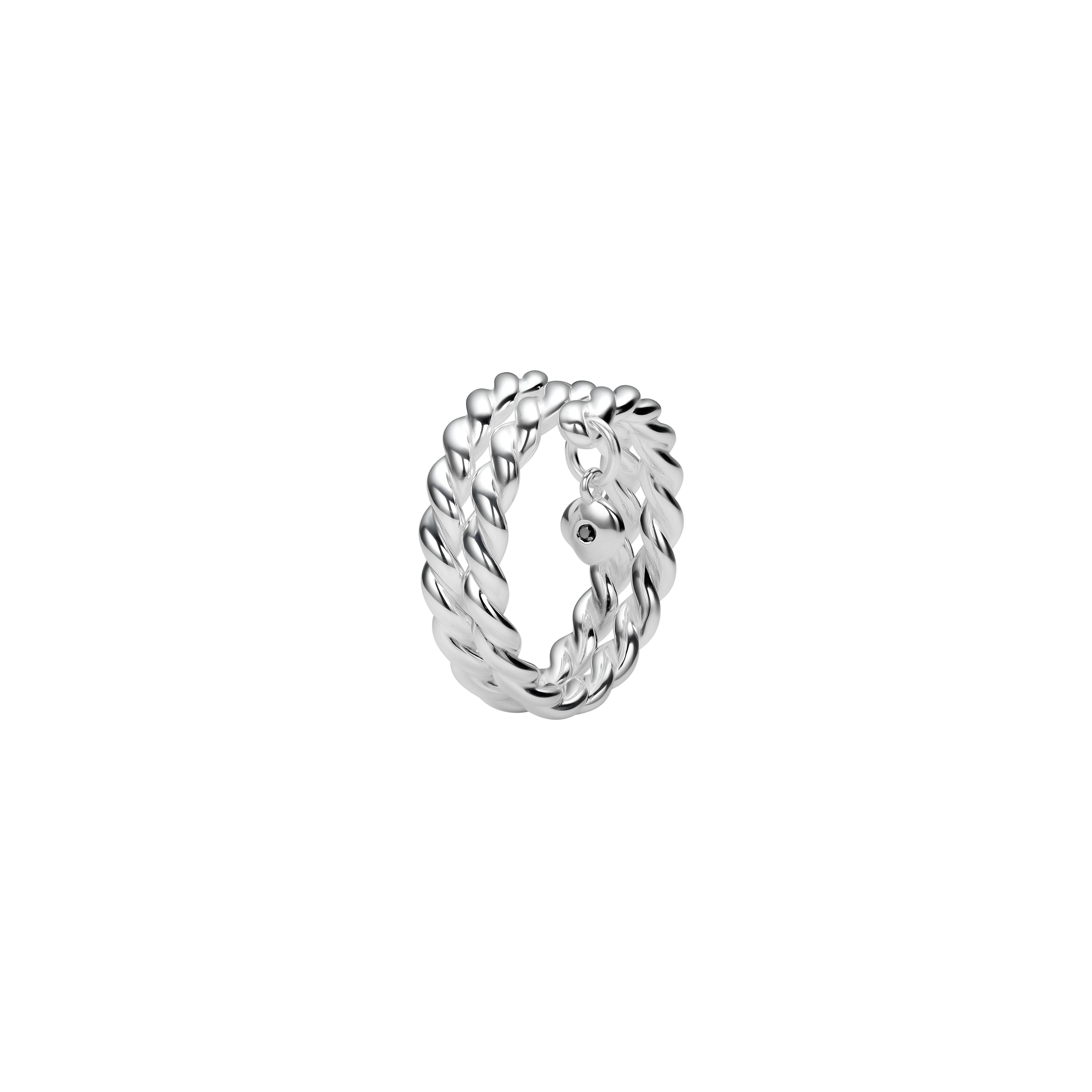 Многослойное кольцо ROZ из серебра с черным бриллиантом на подвеске
