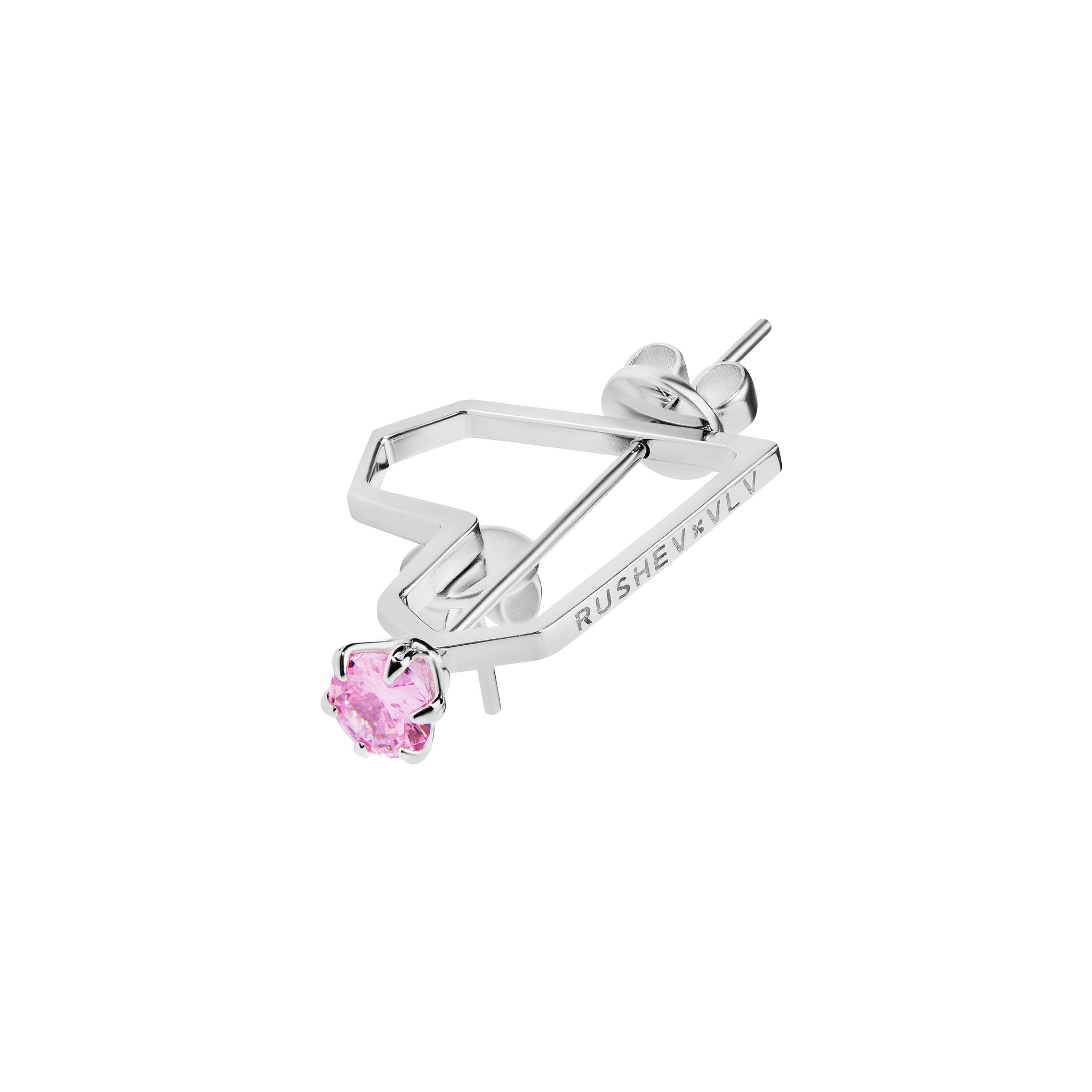 Коллаборация VLV x RUSHEV — это вызов условностям. Дерзкая моносерьга в форме сердца, проткнутая пином с черным или розовым камнем — не просто аксессуар, а настоящие доспехи для тех, кто любит нарушать правила, смешивать эстетики и притягивать взгляды. Эти украшения - настоящий манифест без полутонов.
