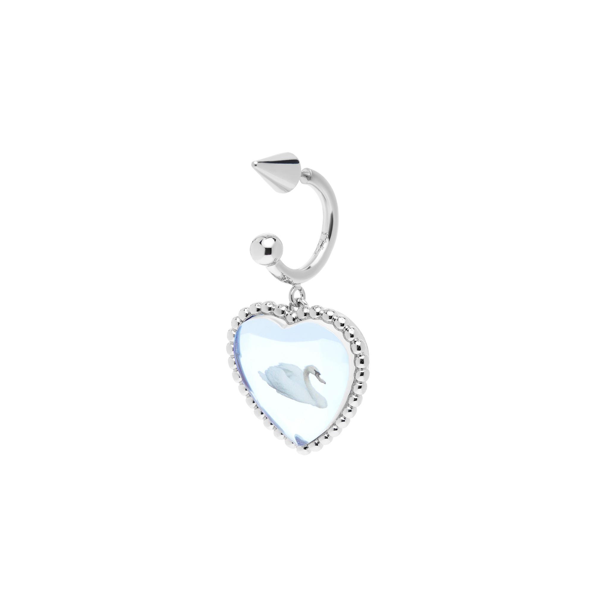 Сказочная моносерьга от бренда Saf Safu станет для вас must have перед любым важным мероприятием! Грациозный лебедь в сердечке из хрусталя - невозможно пройти мимо!