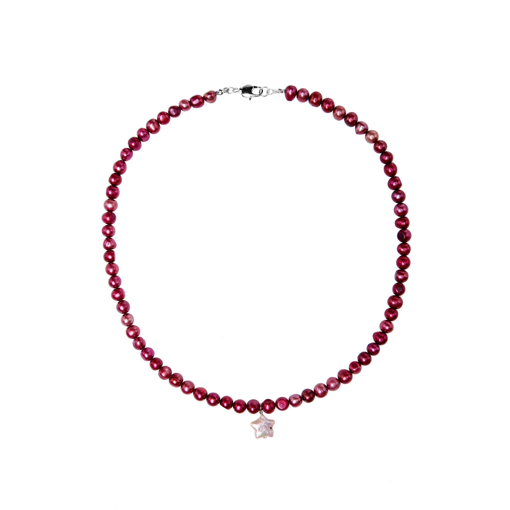 Акцентное колье от бренда Pearly Cloud из красного культивированного жемчуга с аккуратной подвеской в форме звезды - яркая цацка для вашей шкатулки!