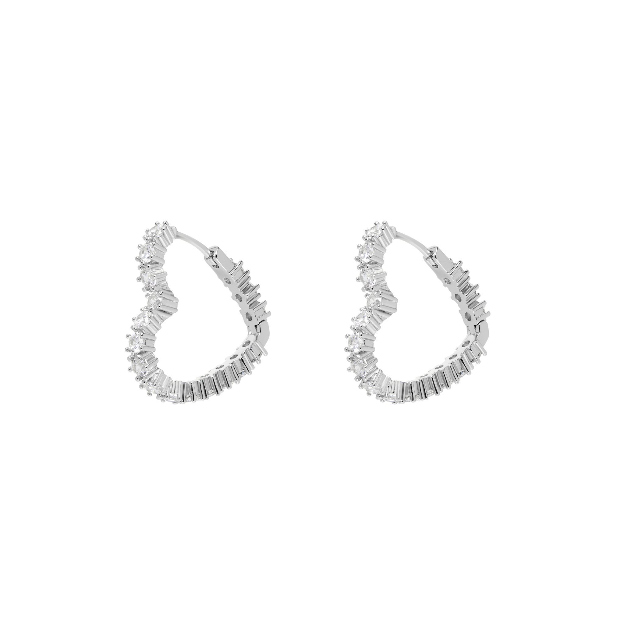 Diamond Heart Bijoux Hoops - Silver