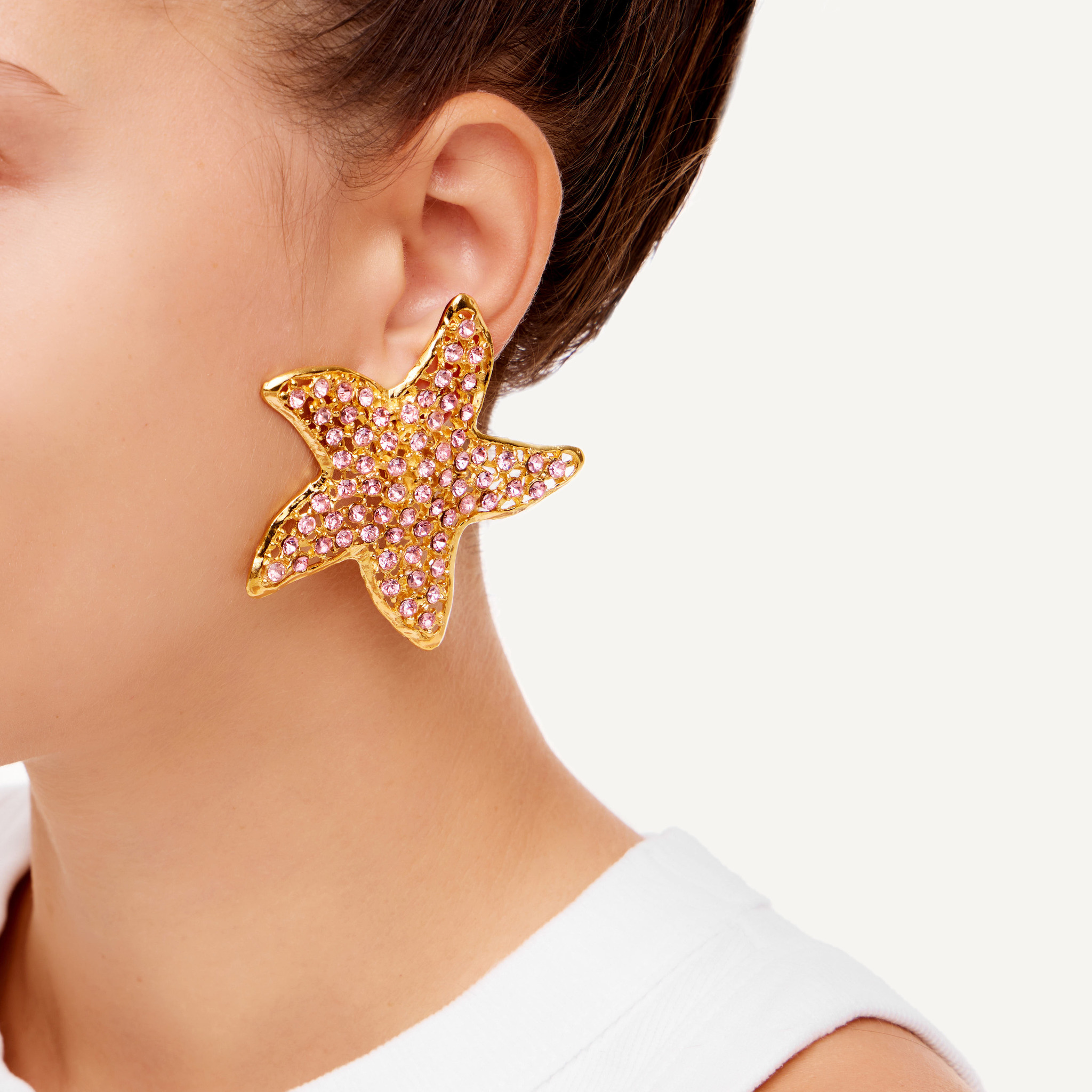 Серьги из латуни в форме морских звёзд — настоящий кусочек средиземноморского лета. Усыпаны кристаллами, которые будут ярко сиять на солнце и сочетаться с любым твоим образом. Созданы вручную в Греции мастерами бренда Mayol.